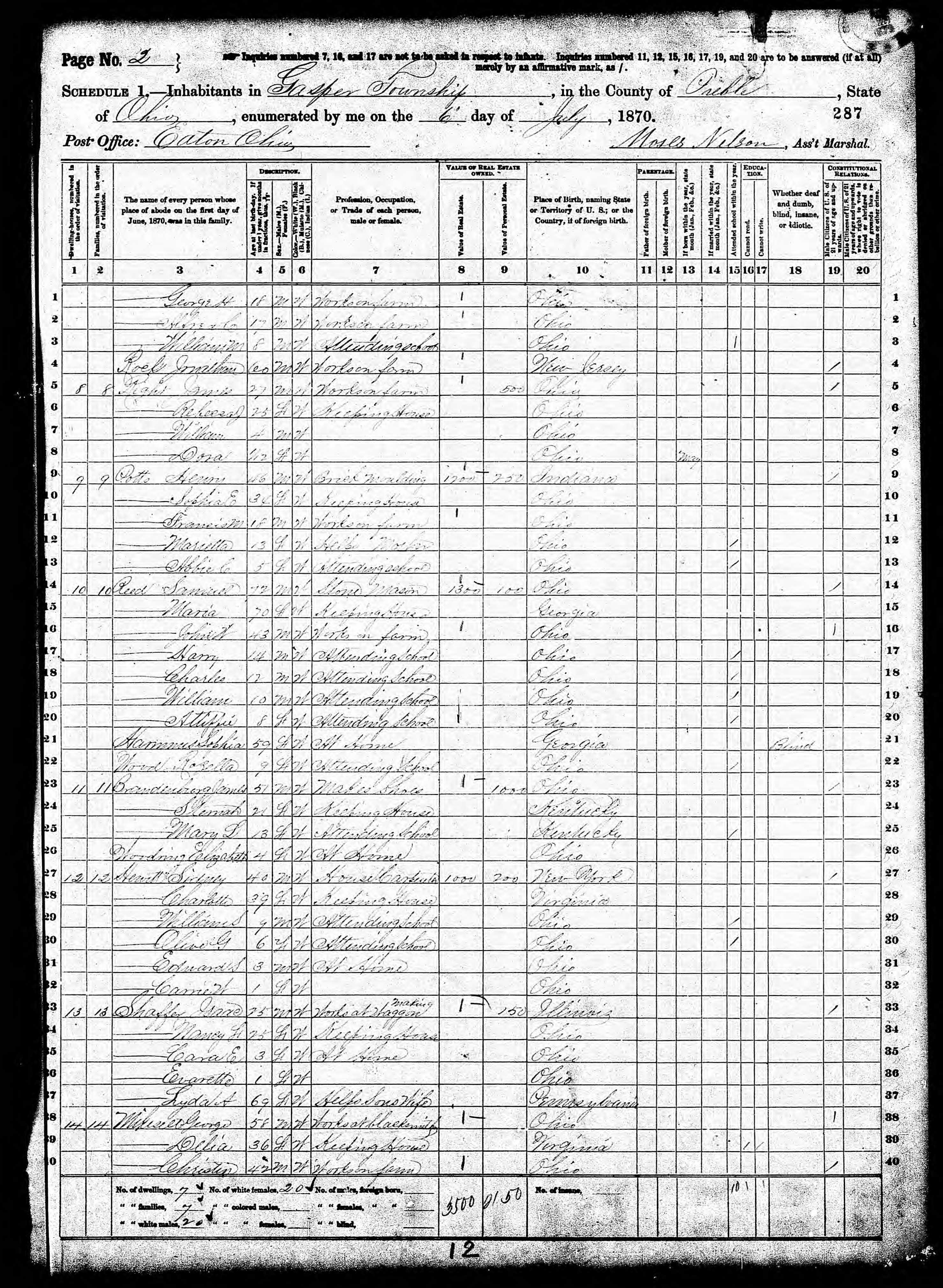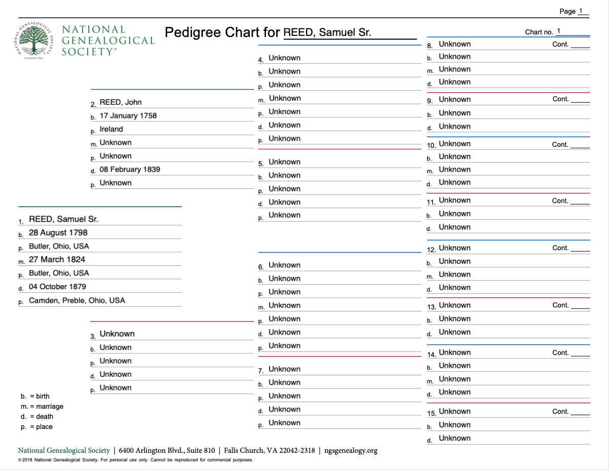 When Samuel Reed was born on August 28, 1798, his father, John, was 40. He married Mariah Ward on March 27, 1824. They had seven children in 16 years. He died on October 4, 1879, in Camden, Ohio, having lived a long time of 81 years, and was buried there.